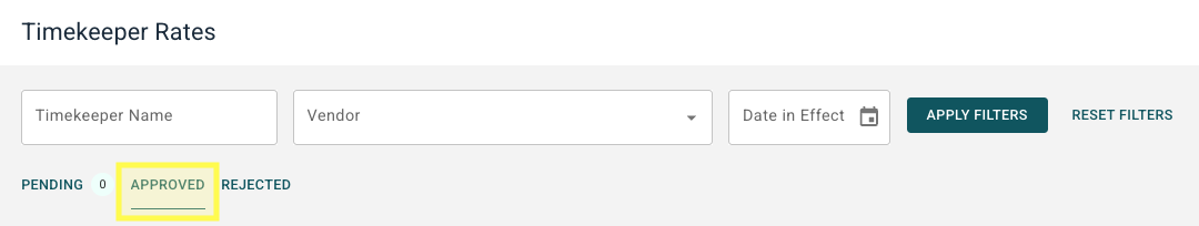 If a timekeeper rate was approved or rejected in error or needs to be reconsidered, Admin users can easily switch it to rejected or approved.