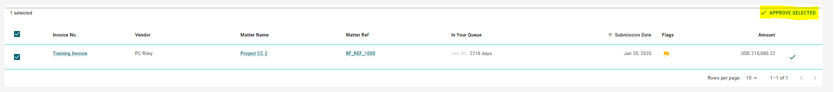Check the boxes beside the invoices you want to approve.