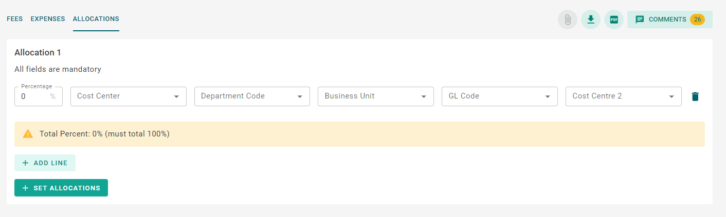 - The invoice must be 100% allocated before it can be approved.