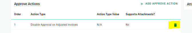 | 4 | Click the trash icon to delete the setting - 'Disable Approval on Adjusted Invoices' |