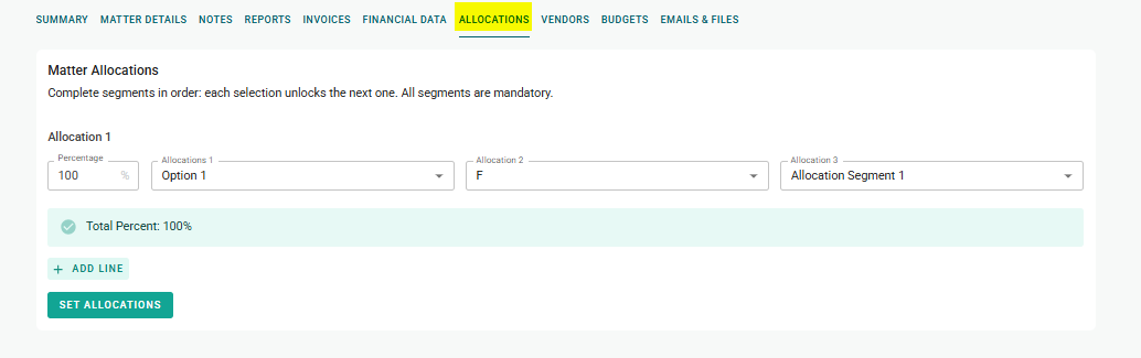 Allocations allow you to split a Matter’s charges across different entities, departments, or accounting codes. This ensures that costs are properly distributed for accurate financial tracking.