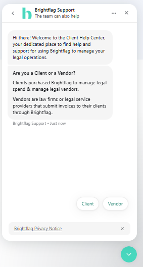 To contact Support, please use the Submit a Request button in the Help Center, or the Help widget in the bottom-right corner of your Brightflag screen.