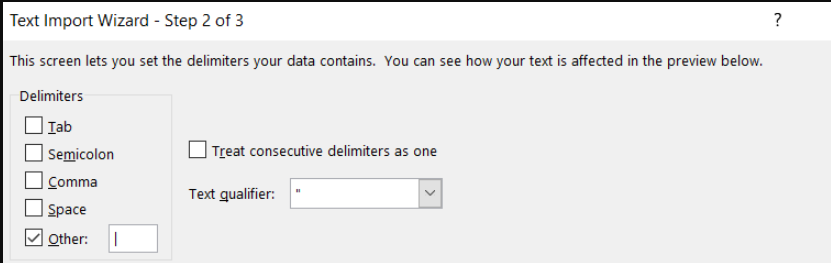 Make sure you've selected "Delimited" and entered|as the delimiter.