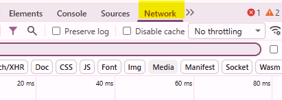 Click Network in the top menu of the Developer Tools panel.