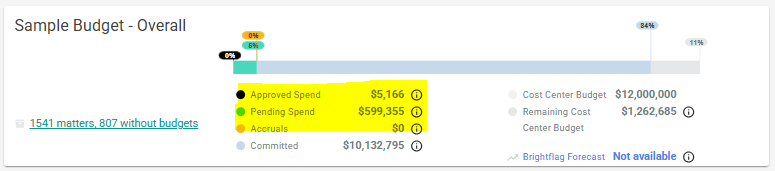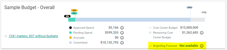 Once Cost Center Budgets are created, Brightflag provides spend data and forecasts to help interpret budget performance.