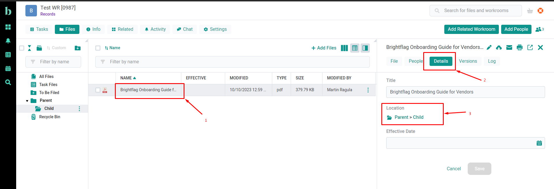 - Find the file in Brightflag Workspace and click on it to open the right-hand pane.