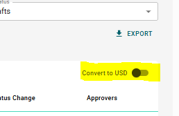 Brightflag allows you to convert invoice amounts to your company’s default currency on the Invoices page.